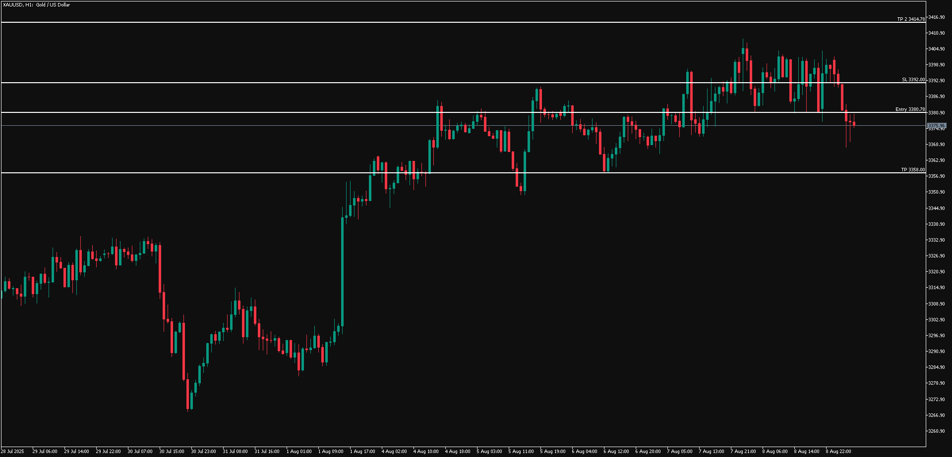 Pergerakan harga Emas saat ini tengah mencoba untuk bergerak bearish, dan berpotensi turun ke sekitar area 3358.00.