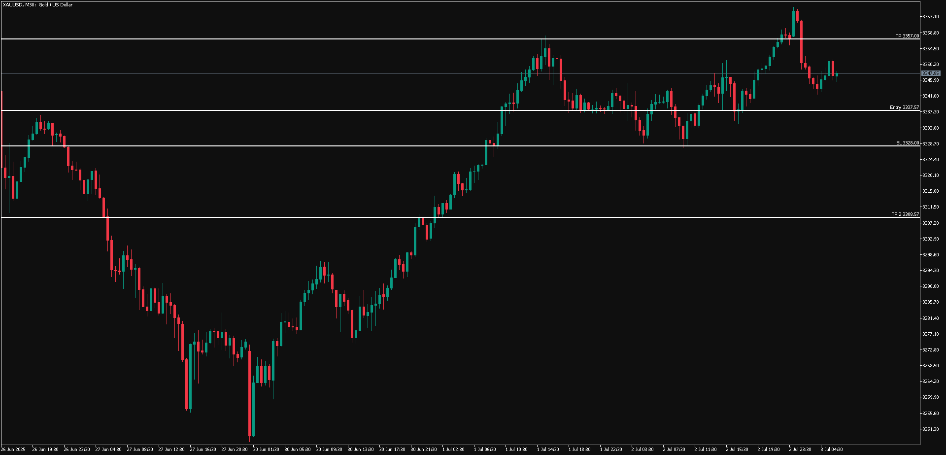 Cermati pergerakan harga Emas jika terus bertahan di atas area 3337.57-3328.00, di mana harga Emas berpotensi naik lebih lanjut ke sekitar area 3357.00.