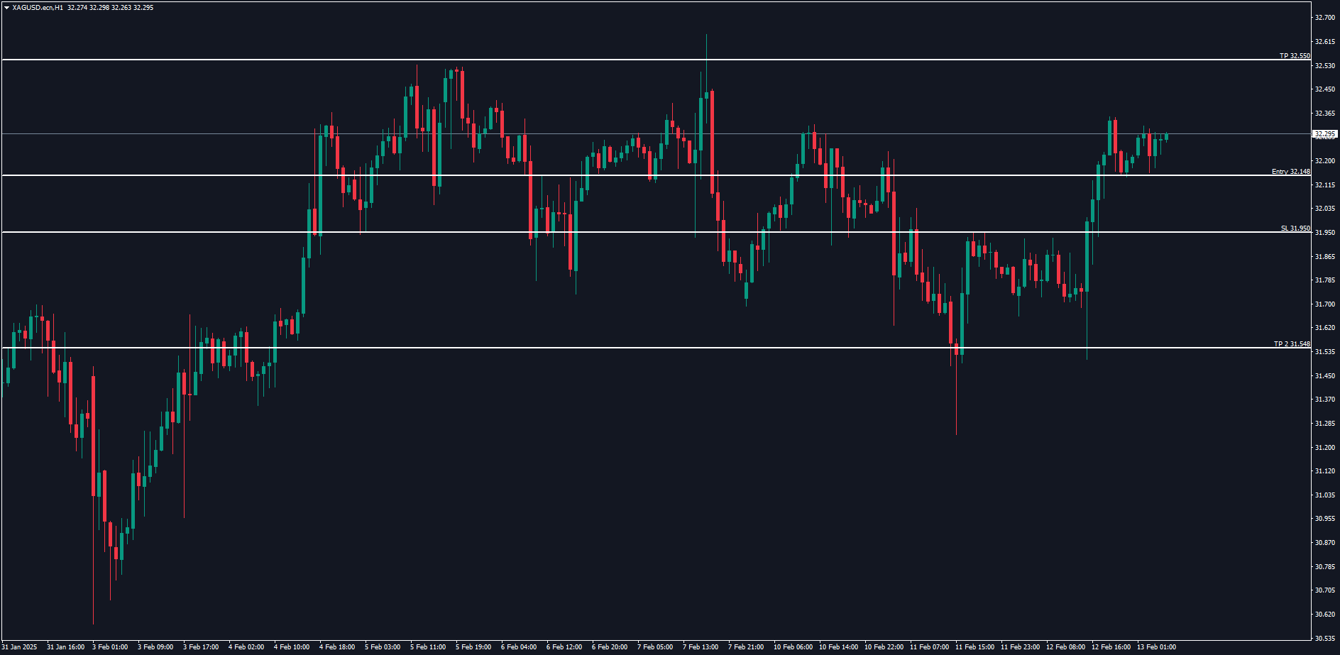 Cermati pergerakan harga Perak jika terus bertahan di atas area 32.148-31.950, di mana harga Perak berpotensi naik lebih lanjut ke sekitar area 32.550.