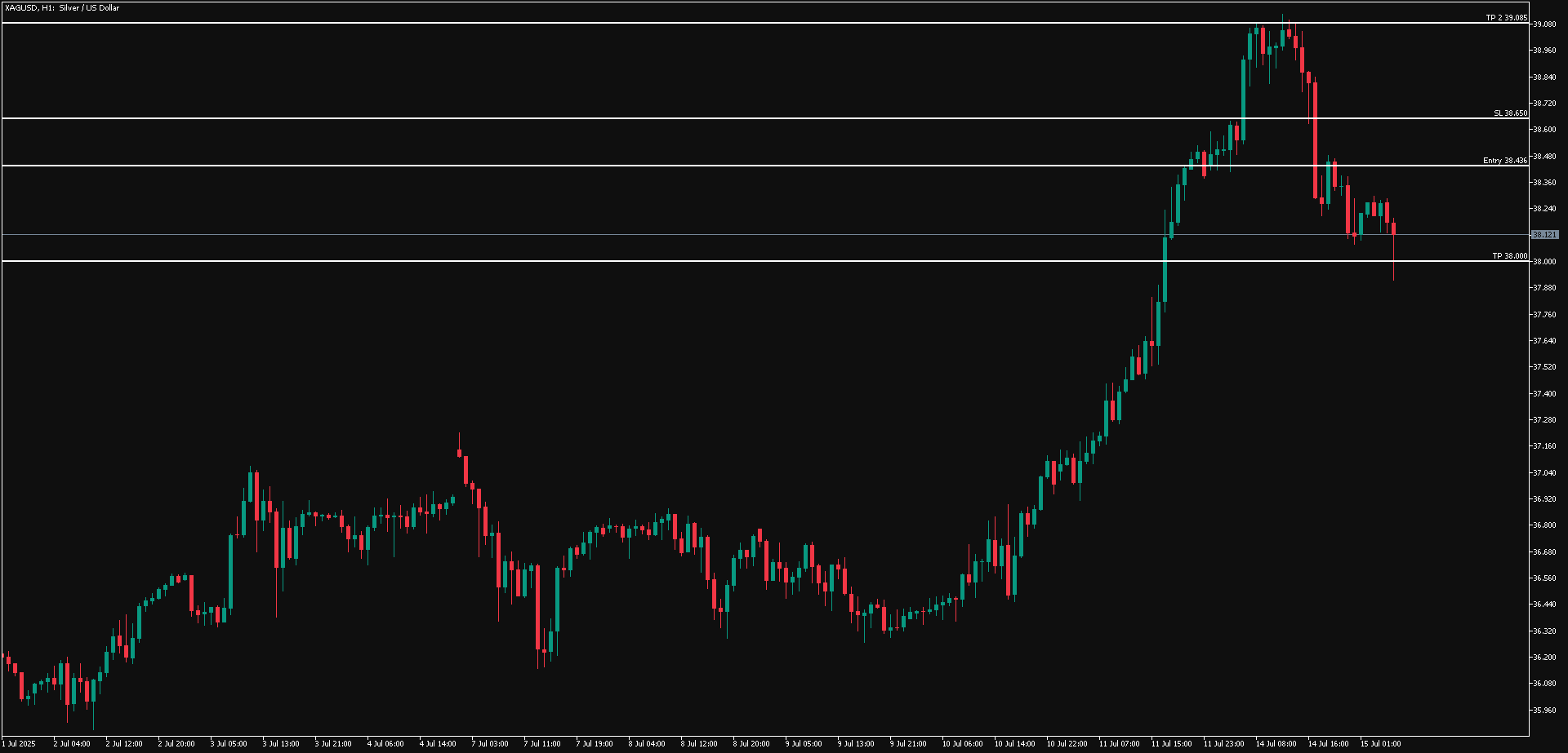Cermati pergerakan harga Perak jika terus bertahan di bawah area 38.436-38.650, di mana harga Perak berpotensi turun lebih lanjut ke sekitar area 38.000.