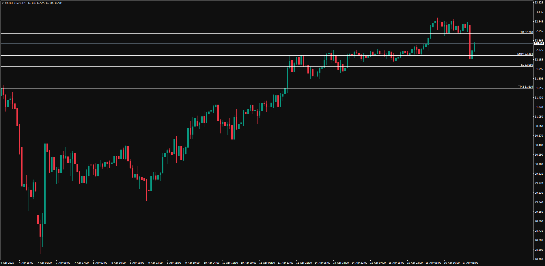 Cermati pergerakan harga Perak jika terus bertahan di atas area 32.264-32.050, di mana harga Perak berpotensi naik lebih lanjut ke sekitar area 32.700.