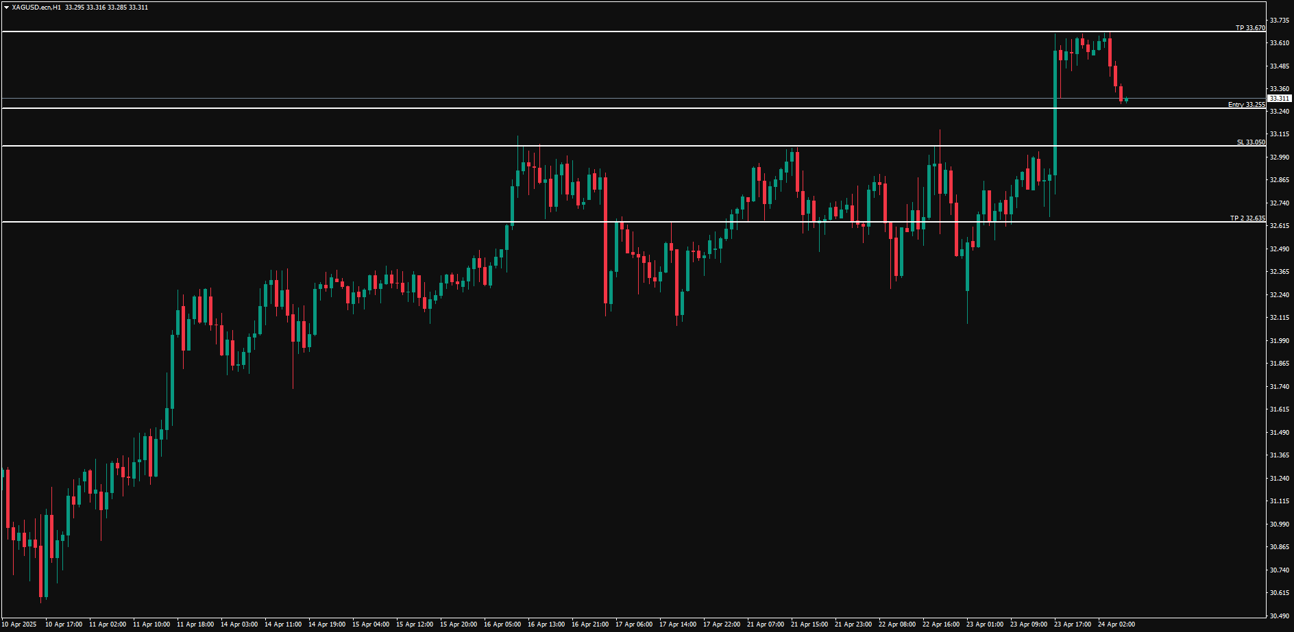 Cermati pergerakan harga Perak jika terus bertahan di atas area 33.360-33.255, di mana harga Perak berpotensi naik lebih lanjut ke sekitar area 33.670.