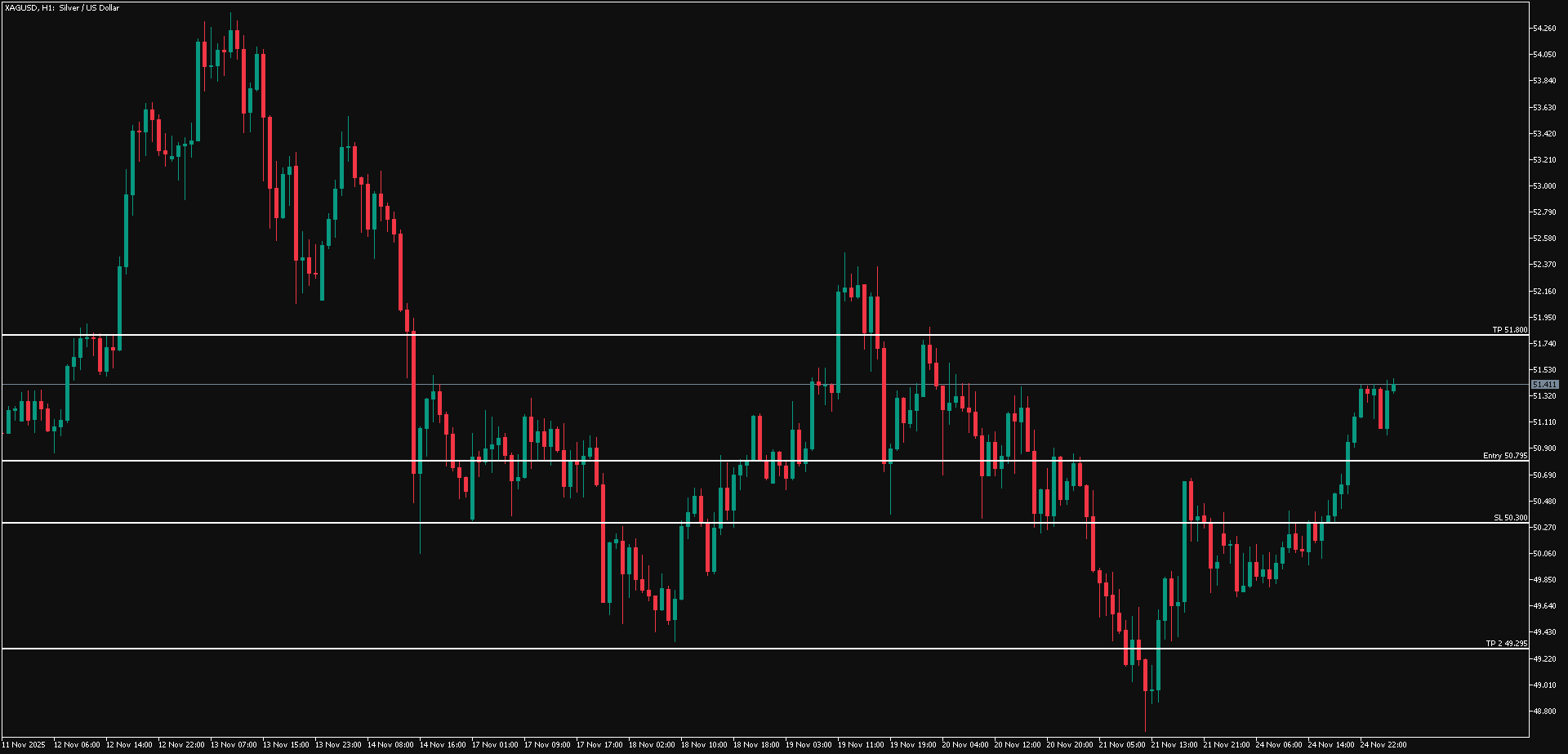 Pergerakan harga Perak saat ini tengah mencoba untuk bergerak bullish, dan berpotensi naik ke sekitar area 51.800.