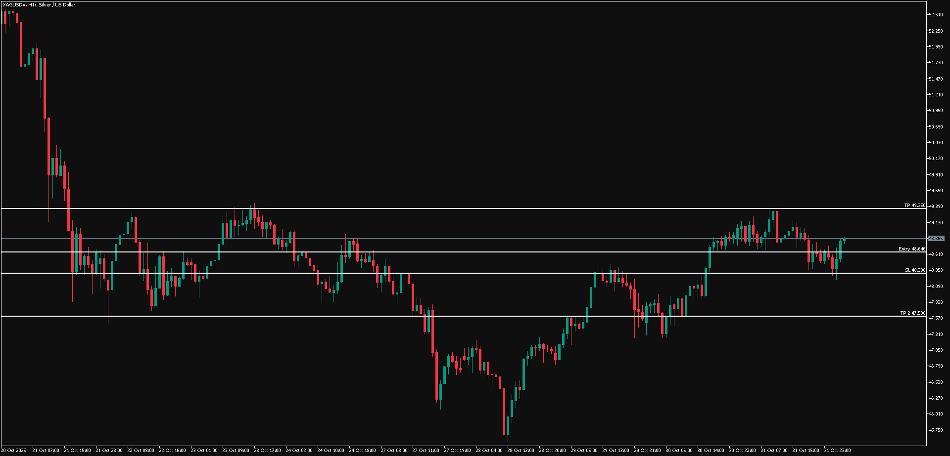 Cermati pergerakan harga Perak jika terus bertahan di atas area 48.646-48.300, di mana harga Perak berpotensi naik lebih lanjut ke sekitar area 49.350.