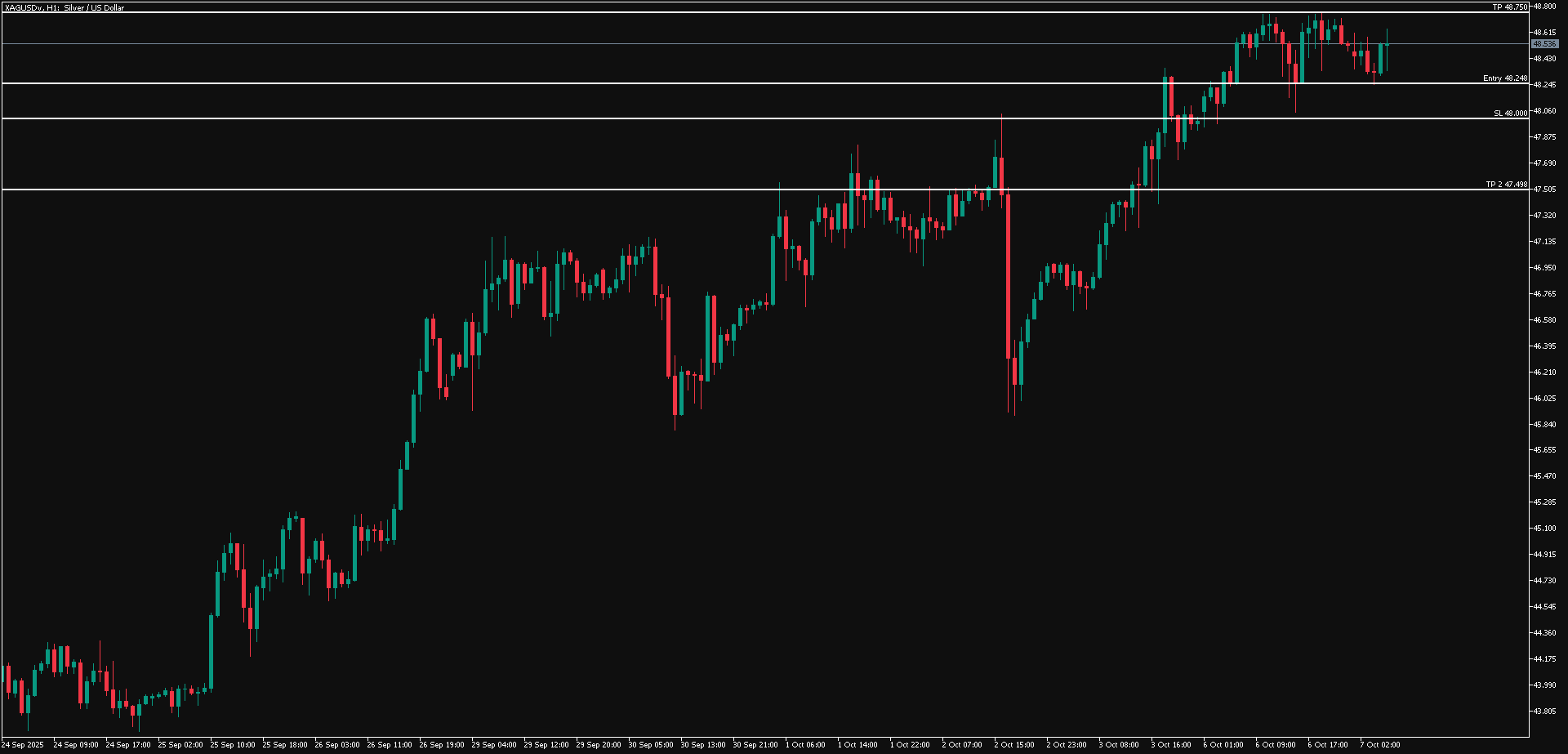 Cermati pergerakan harga Perak jika terus bertahan di atas area 48.248-48.000, di mana harga Perak berpotensi naik lebih lanjut ke sekitar area 48.750.