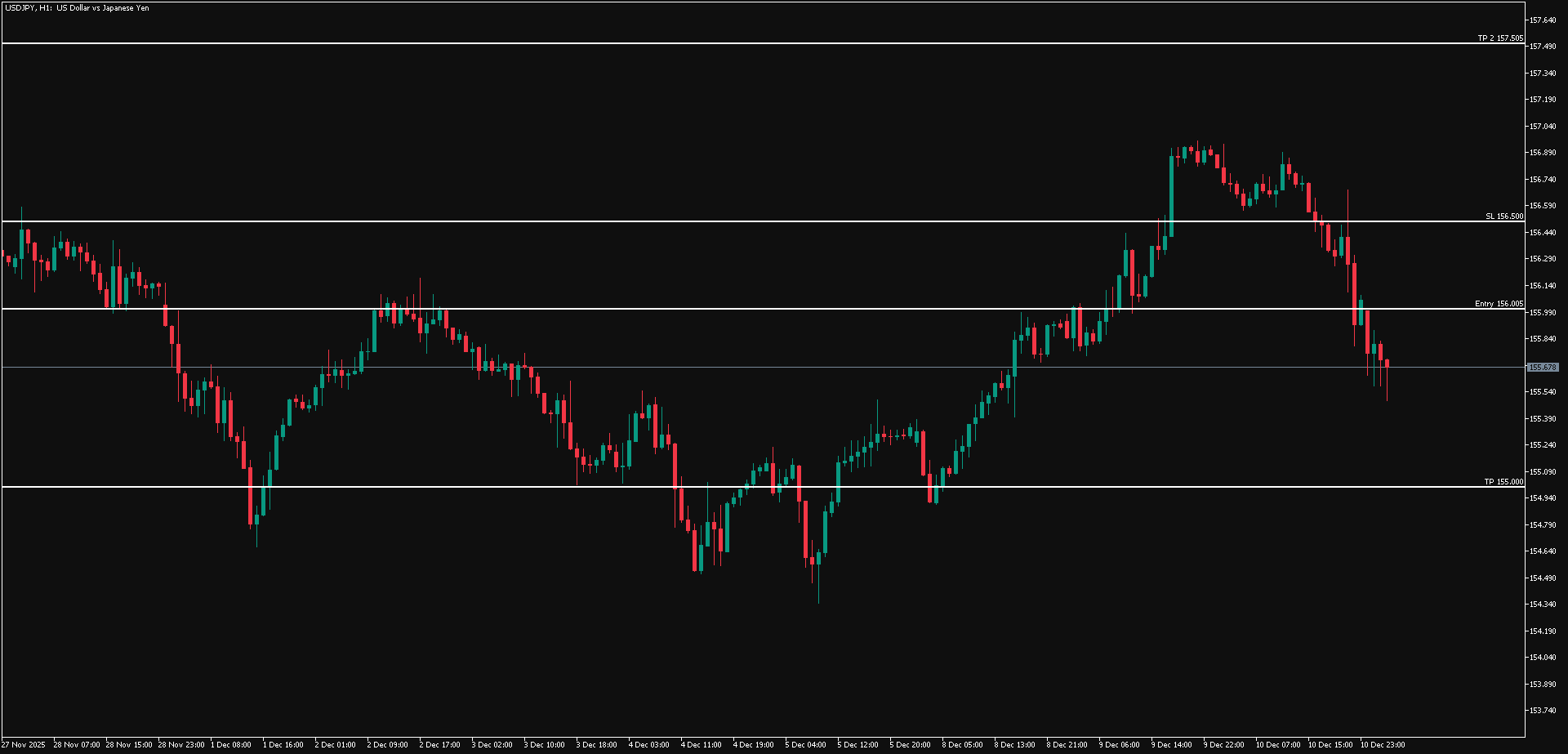 Pergerakan USD/JPY saat ini tengah mencoba untuk bergerak bearish, dan berpotensi turun ke sekitar area 155.000.