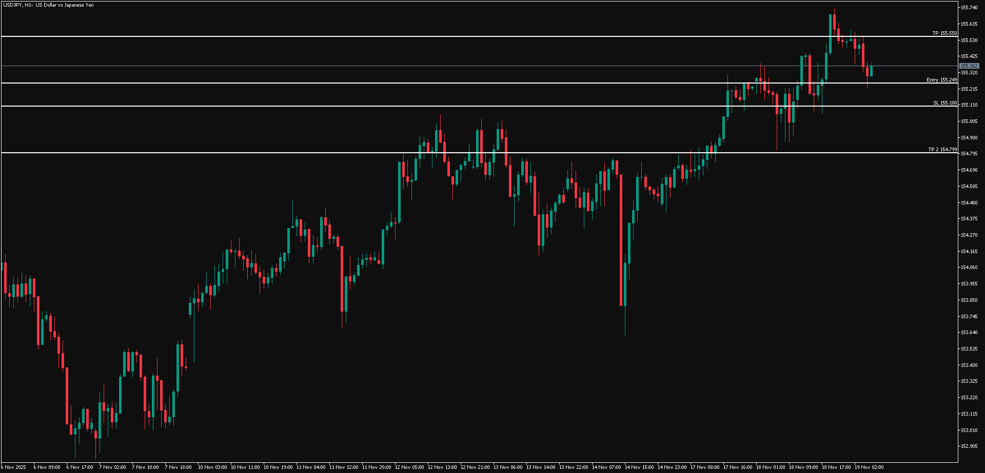 Sebaliknya waspadai jika USD/JPY berhasil menembus ke bawah area 155.100, karena USD/JPY berpotensi berbalik bearish ke sekitar area 154.799.