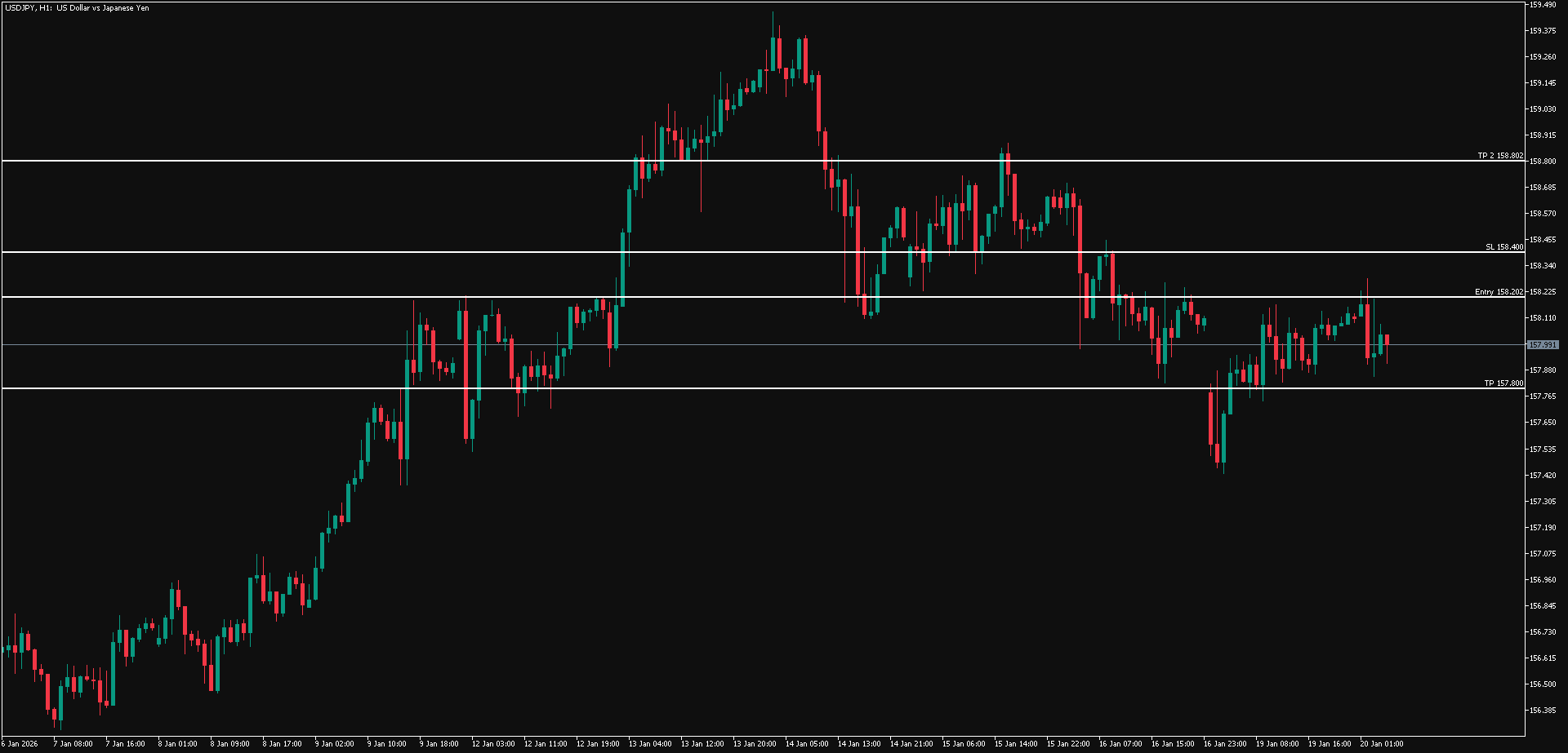 Cermati pergerakan USD/JPY jika terus bertahan di bawah area 158.202-158.400, di mana USD/JPY berpotensi turun lebih lanjut ke sekitar area 157.800.