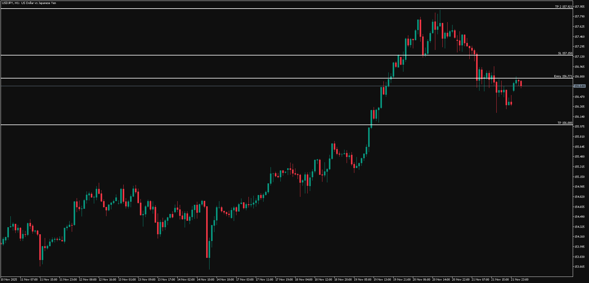 Sebaliknya waspadai jika USD/JPY berhasil menembus ke atas area 157.150, karena USD/JPY berpotensi berbalik bullish ke sekitar area 157.921.