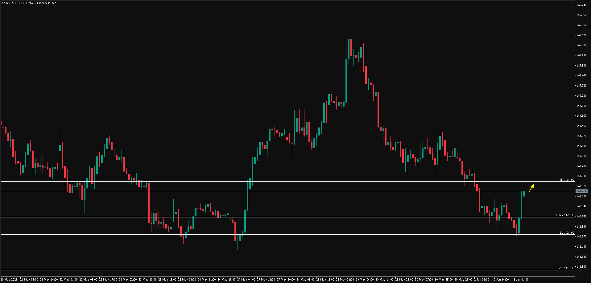 Pergerakan USD/JPY saat ini tengah mencoba untuk bergerak bullish, dan berpotensi naik ke sekitar area 143.400.