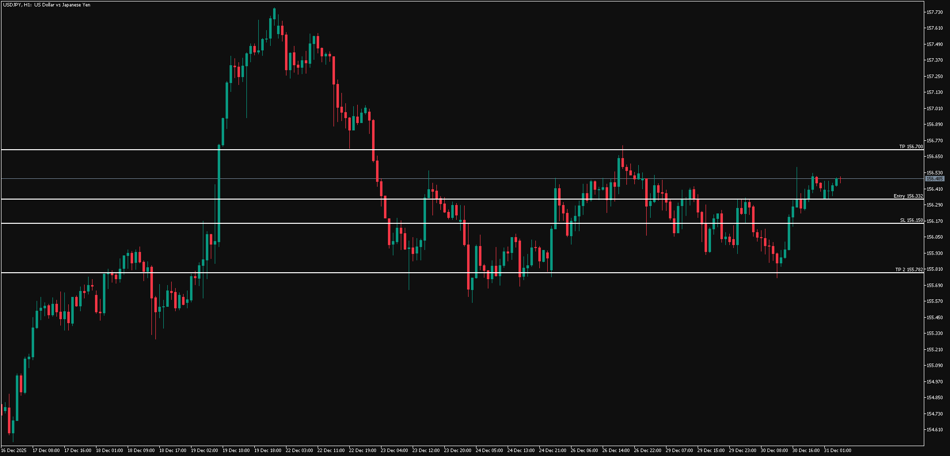 Sebaliknya waspadai jika USD/JPY berhasil menembus ke bawah area 156.150, karena USD/JPY berpotensi berbalik bearish ke sekitar area 155.782.