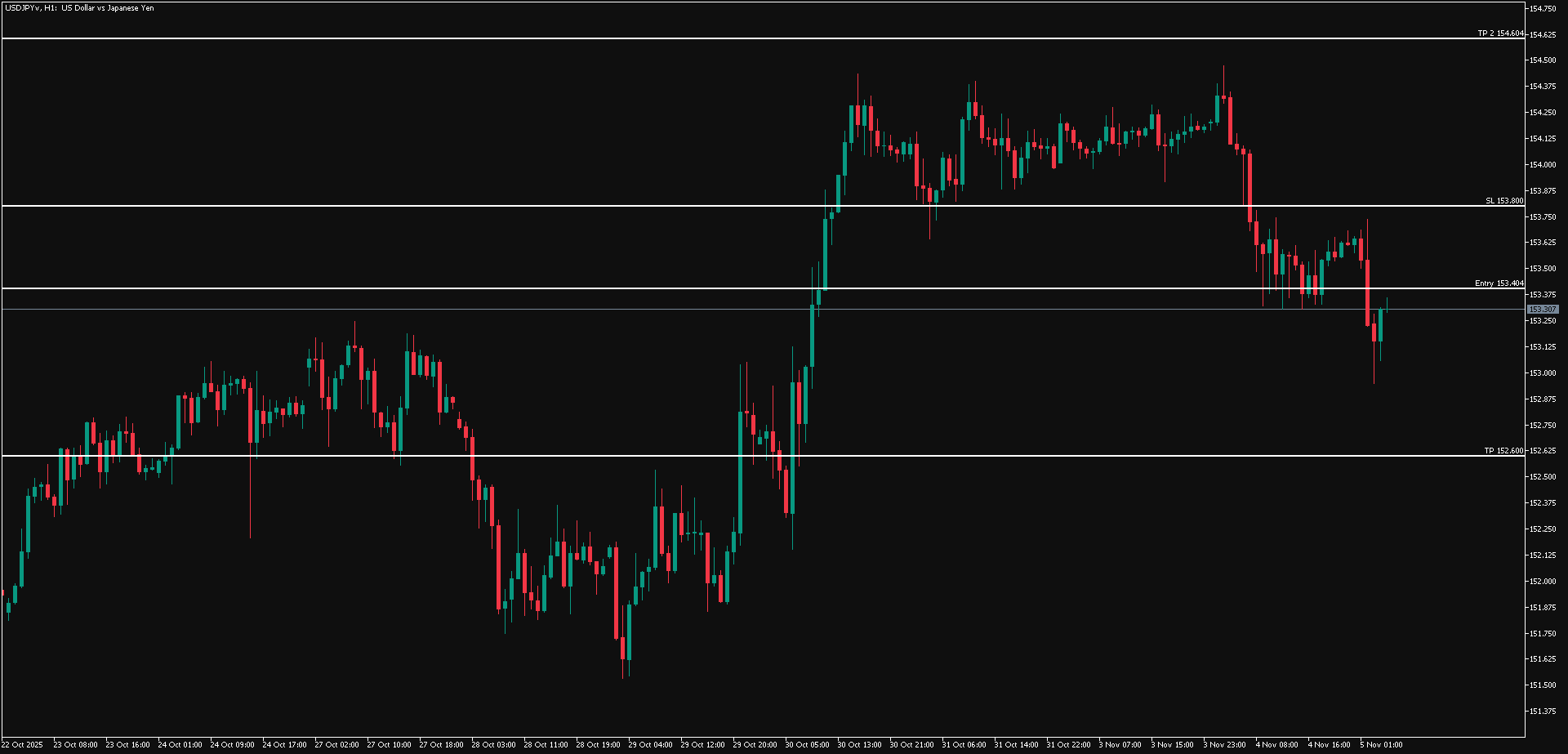 Cermati pergerakan USD/JPY jika terus bertahan di bawah area 153.404-153.800, di mana USD/JPY berpotensi turun lebih lanjut ke sekitar area 152.600.
