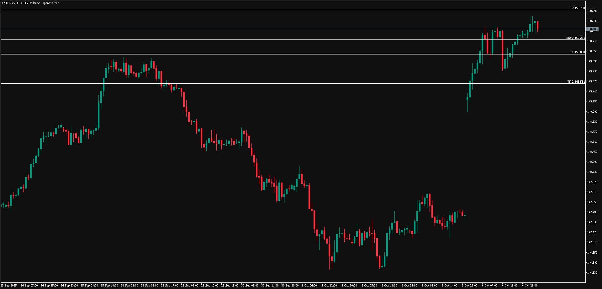 Cermati pergerakan USD/JPY jika terus bertahan di atas area 150.231-150.000, di mana USD/JPY berpotensi naik lebih lanjut ke sekitar area 150.700.